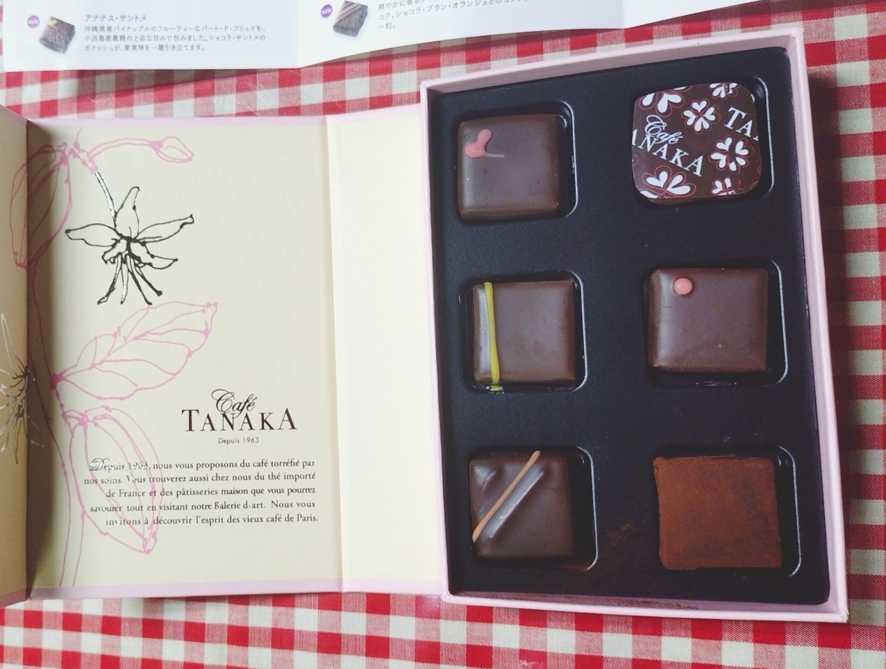 チョコレート view large picture ちょっとムカつくことがあったので、落ち着きを取り戻すための糖分です。カフェタナカのチョコは初めて。どうしてもクッキーのイメージでしたが、かなり美味しい。そりゃ一粒500円以上ですもんね…。とりあえず一番小さい箱、というか、一番小さい箱しか残ってなかったのですが、来年のアムールは一番大きい箱を買ってもいいかもというくらいには美味しかったです。一気の食べたらもったいなかったので、包丁で半分に切ってから優雅にいただきました。