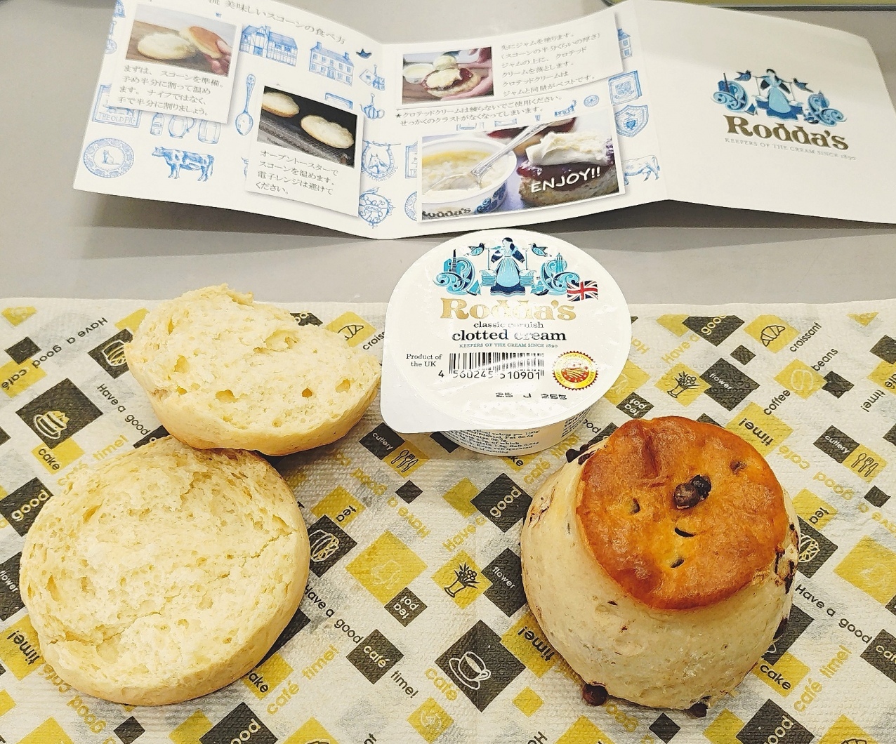 スコーン view large picture 名古屋に美味しいスコーン屋さんがやってきた!ってことで、時間潰しにもなるしで寄ってきました。1時間近く並びました。アムールかと思いました。が、並ぶに値する美味しさですね。プレーンとオレンジアールグレイとチョコのセットにしたんですが、なんとプレーンが一番美味しい…というか全部美味しかったんですが、スコーンの美味しさが全面的に押し出されてきたのはプレーンでした。あとクロテッドクリームも美味しくてジャムいらずでした。これは多分また買います。